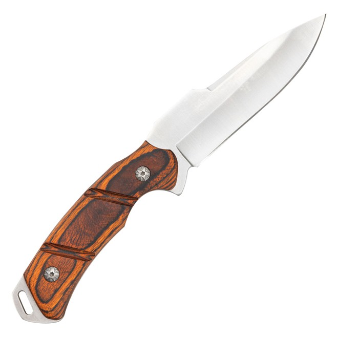 A Faca Burning compõe o portfólio de cutelaria da INVICTUS. Fabricada com lâmina em aço inoxidável 3Cr13, ela é uma faca Full Tang, com lâmina de 110 mm de comprimento, sendo uma peça robusta, perfeita para quem pretende ter em mãos um produto versátil em seu EDC, ideal para os mais diversos fins. Sua lâmina é do tipo Drop Point, ou seja, com curvatura leve em todo o dorso, com queda em direção à ponta, perfeita para cortes, entalhes, raspagens e remoção de peles. Acabamento em aço polido e cabo anatômico confeccionado em madeira natural com entalhe e design que facilita a empunhadura, oferecendo maior segurança no manuseio. Além disso, a Faca Burning possui porta-fiel e bainha em Nylon® com passador de cinto para você portar de maneira ostensiva.